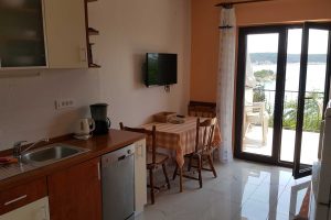 Apartment 1A is a one-bedroom apartment with a capacity for 2+2 people, ideal for couples or smaller groups seeking a more intimate setting. – Kitchen with dinningroom and livingroom, – Bedroom, – Showerroom, – Large Terasse – TV – SAT